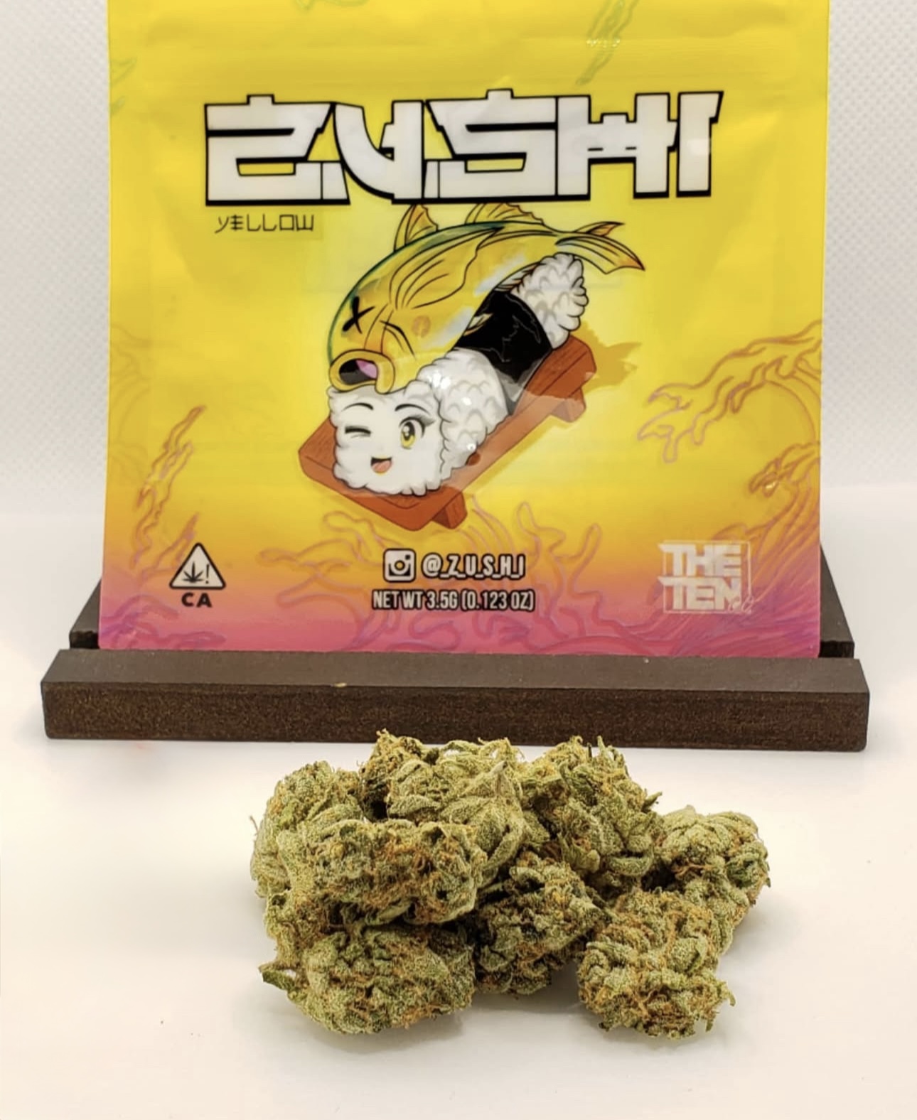 Yellow Zushi is top-shelf quality. The buds are beautiful and frosty, with a crazy strong smell when you open the bag. The high is smooth but very potent—definitely a favorite.